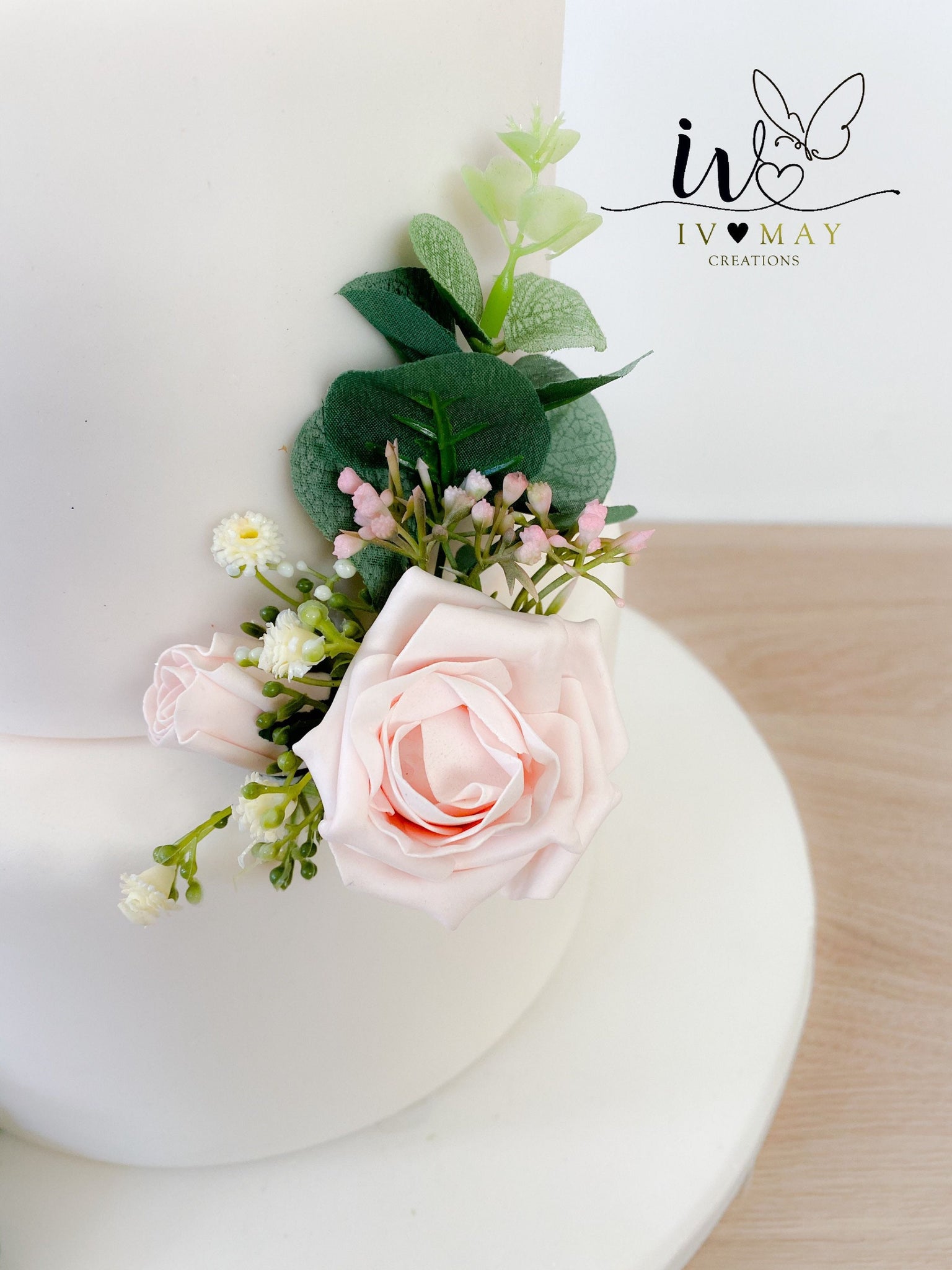 Blush pink Wedding christening cake flower arrangement topper mini eucalyptus roses more colours available