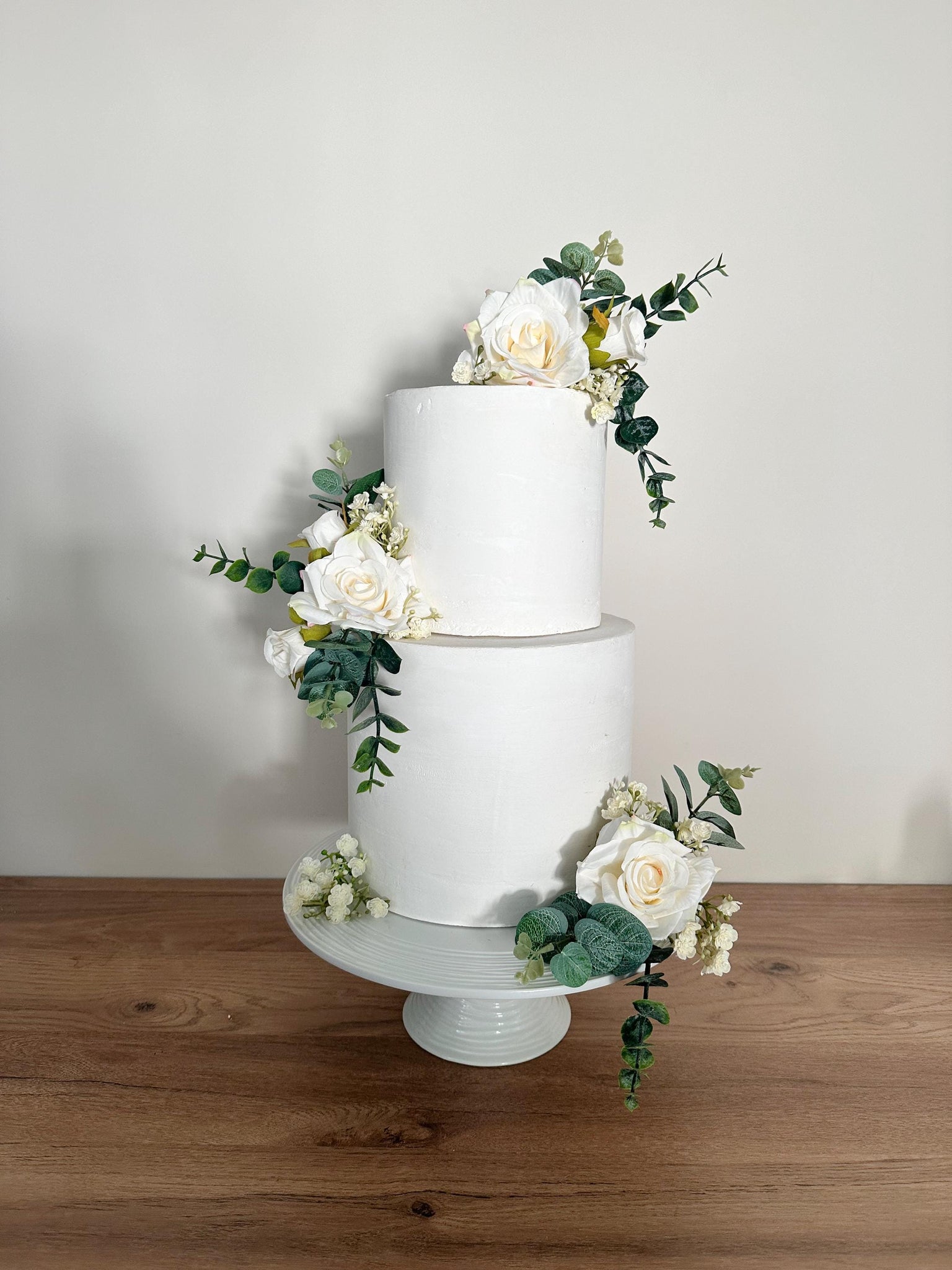 FULL SET cake flowers - Artificial Silk cake flowers - Cream roses - gypsophila eucalyptus leaf wedding decorations floral arrangement