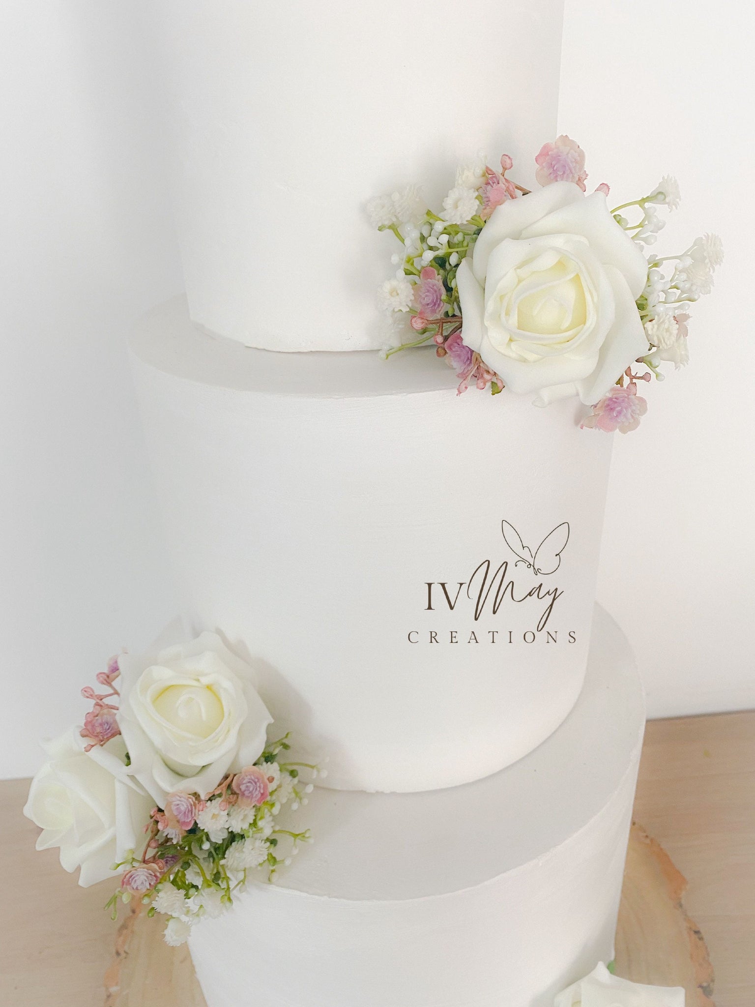 FULL SET Wedding Christening Cake Flower Arrangement Topper & Decorations Roses - ivory blush pink