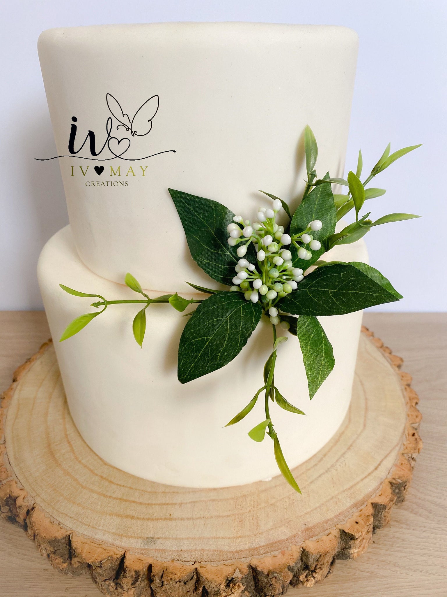 Wedding cake flower arrangement - white berry - greenery decorations - cake flowers