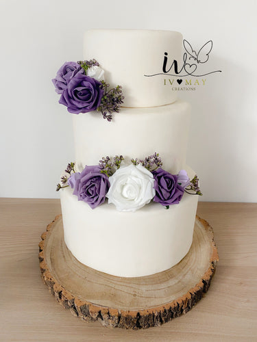 Purple & lilac Wedding christening cake flower arrangement topper foam roses more colours available