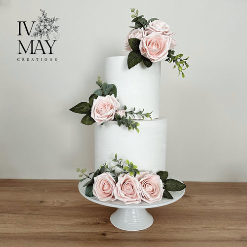 FULL SET Wedding Christening Cake Flower Arrangement Topper Decorations foam roses eucalyptus Blush Pink