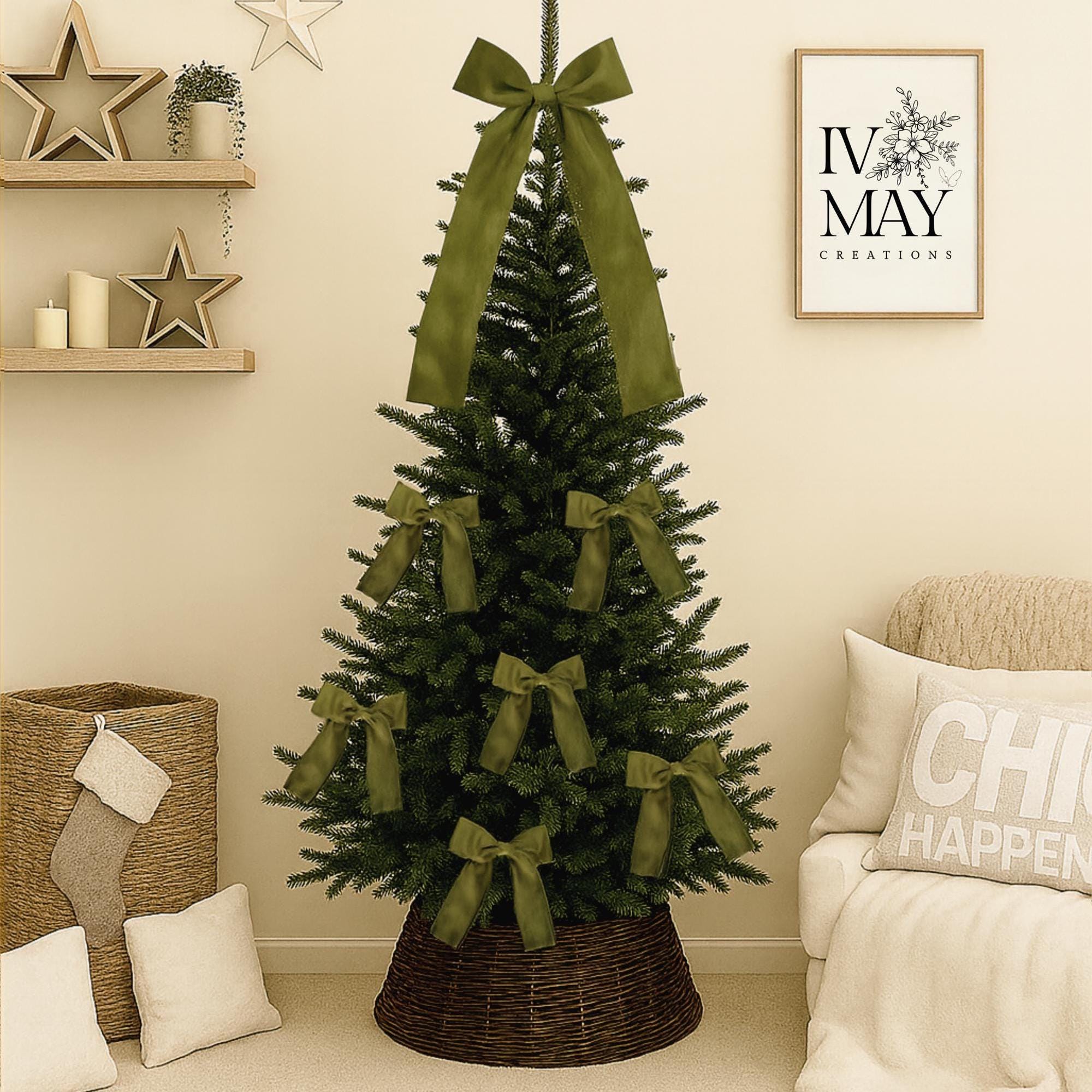 Luxury Handmade Velvet Christmas Tree Bow Topper: Olive Green Clip-On Decor
