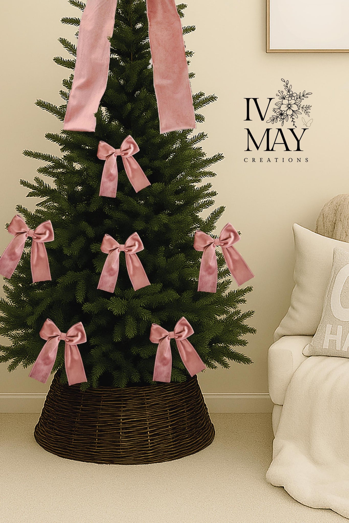 Luxury Handmade Velvet Christmas Tree Bow Topper: Rose Gold Pink Clip-On - Light Dusty Pink - Rose Pink