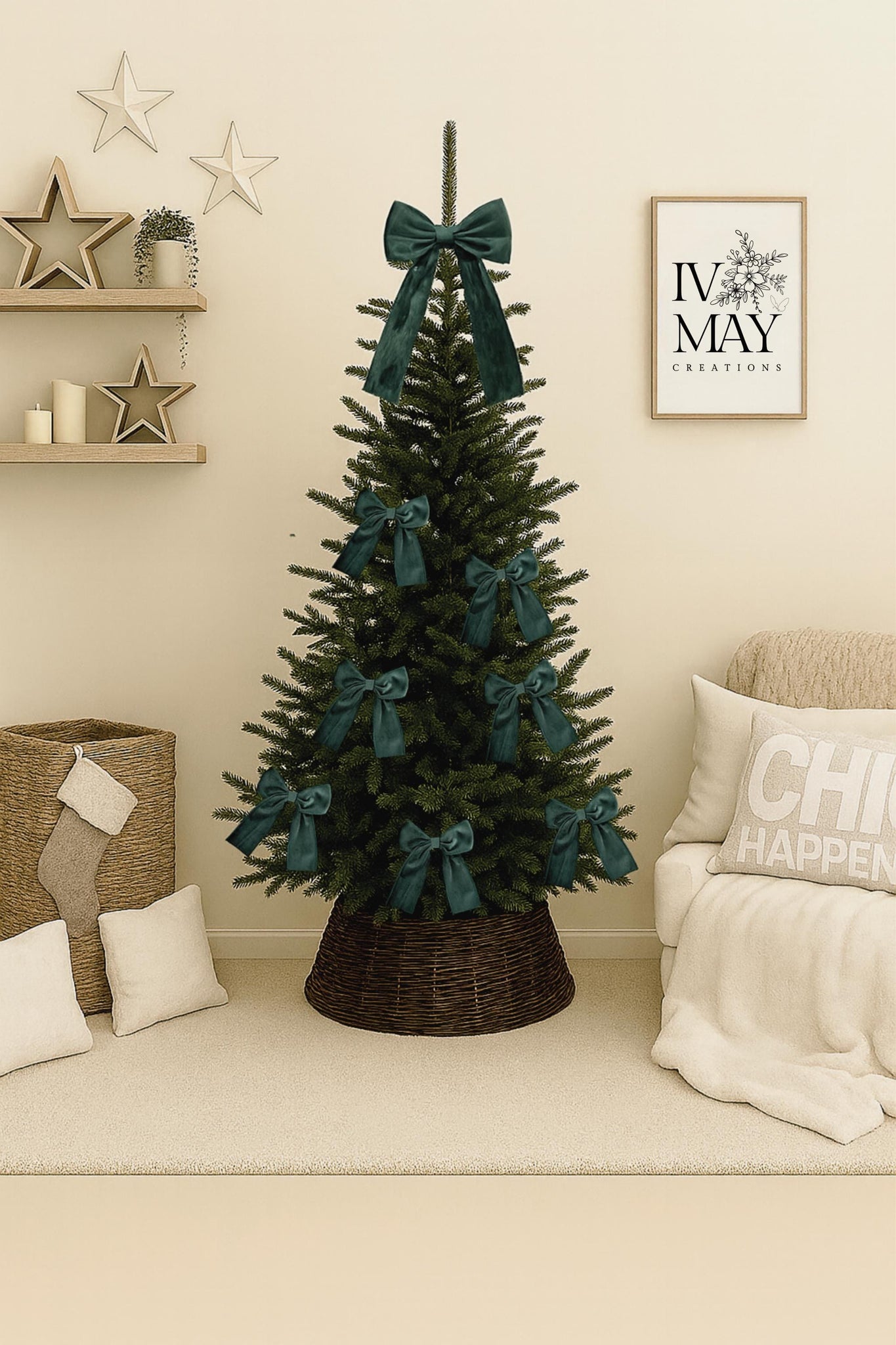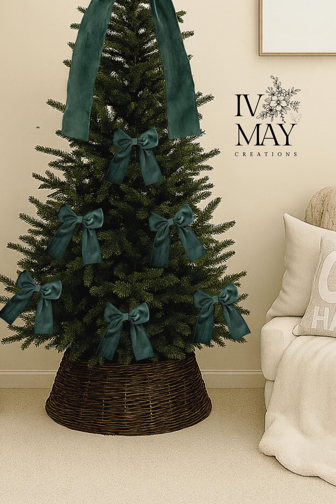 Luxury Velvet Bow Toppers & Set of 3 or 6 Luxury Christmas tree Velvet bows -Clip on