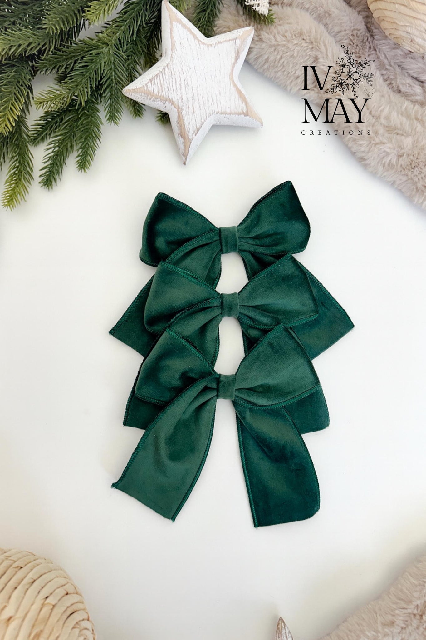 Luxury Handmade Velvet Christmas Tree Bows: Bottle Green Clip-On Decorations - Bottle Green - Forest Green