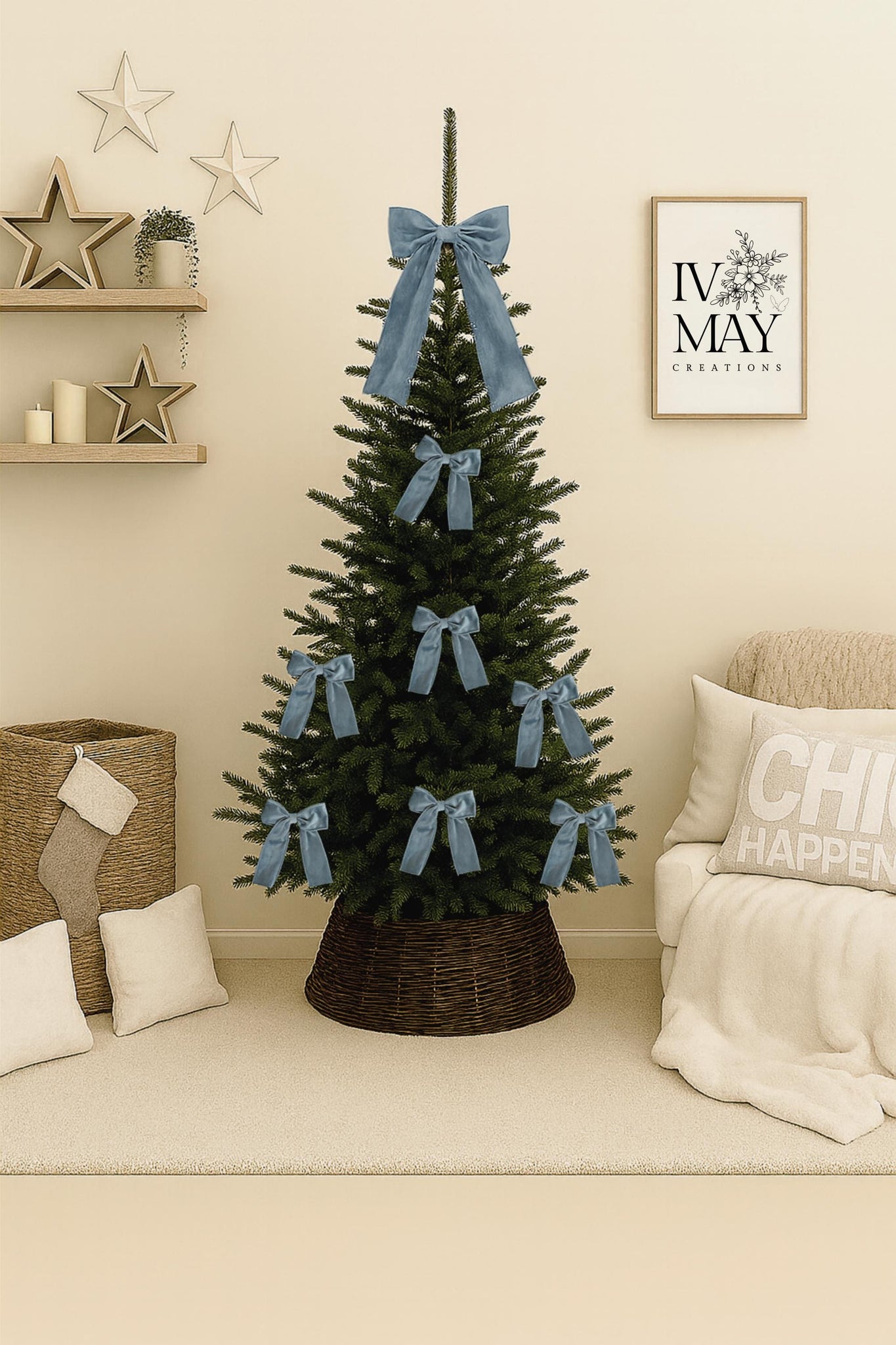 Luxury Handmade Velvet Christmas Tree Bows: Clip-On Decorations, Pale Blue - Dusty Blue