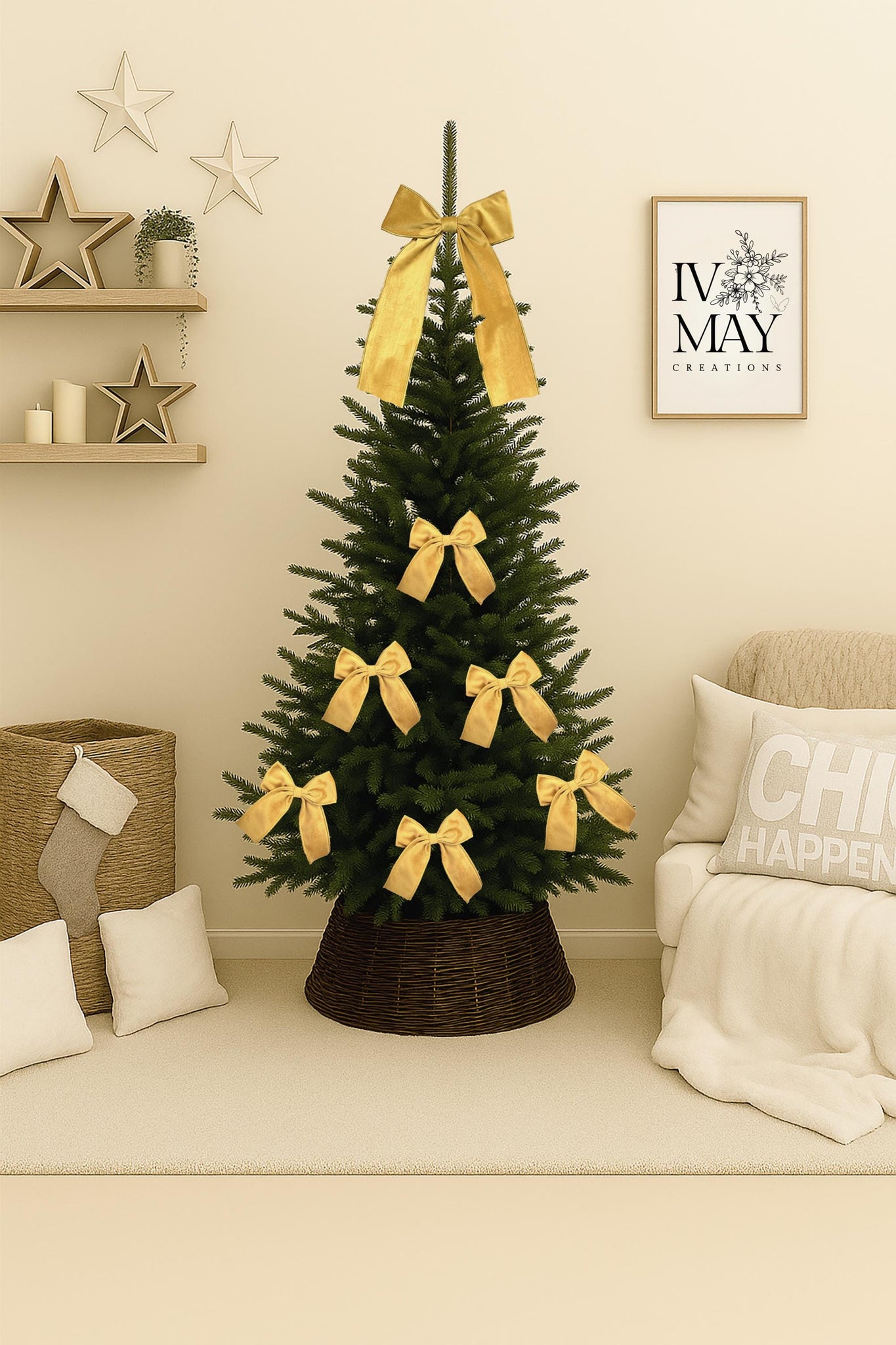All Bow toppers comes with length of wire to attach to the top of the tree