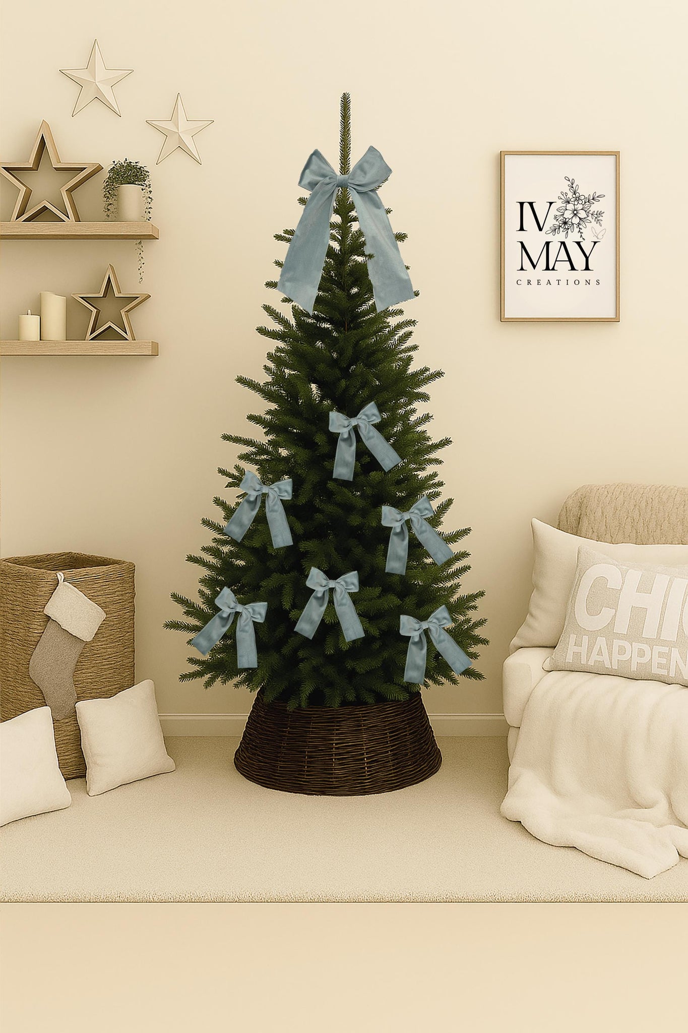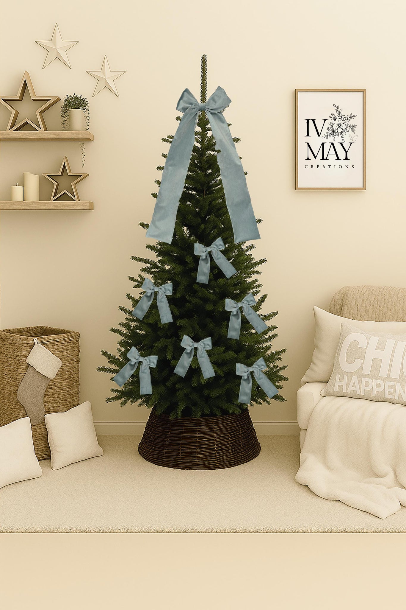 Luxury Velvet Christmas Tree Bows: Mint - Sage Green Clip-on Decorations - Duck Egg