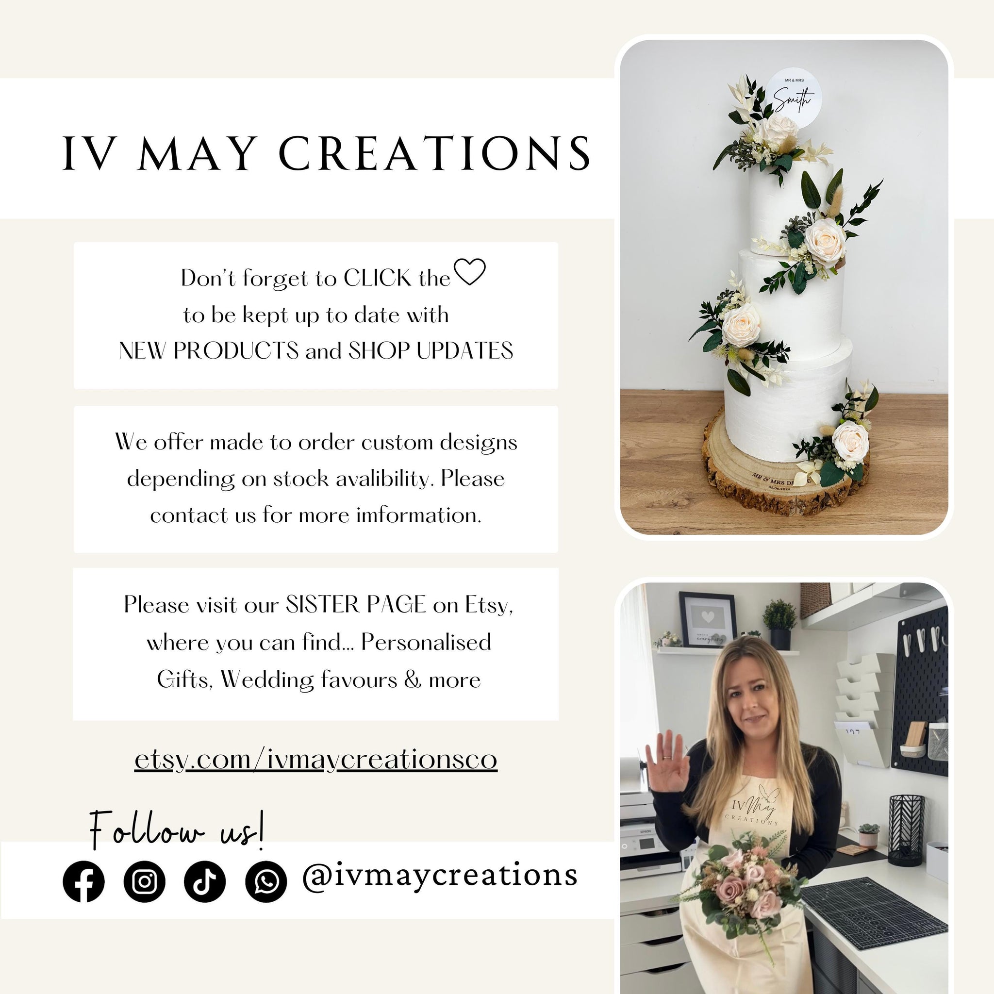 Please note that the image shown is a display picture, and new decoration will be made for you. An exact reproduction is not always possible. All orders are handmade and are made to replicate the listing picture as close to, as possible. No two items are identical. If a specific flower or foliage is currently unavailable, we will substitute for a very similar colour and style to make sure the overall design achieves the same look. If you have any concerns about this, please contact me, I can advise on stock levels.